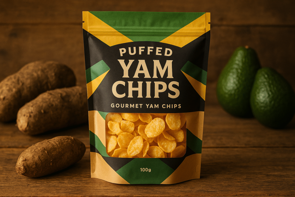 Jamaica’s first-ever puffed yam chips, fried in premium Jamaican avocado oil. Every “ugly” yam, every irregular tuber that once rotted in fields, now becomes a gourmet snack.